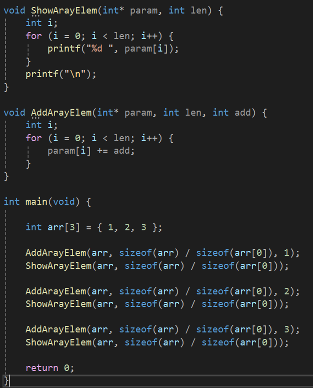 void AddArayElem(int param[], int len, int add) {. . . .}