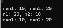 실제 num1과 num2의 값이 변경되지는 않는다.