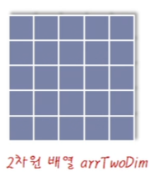 int arrTwoDim[5][5]; // 가로, 세로의 길이가 각각 5인 2차원 int형 배열
