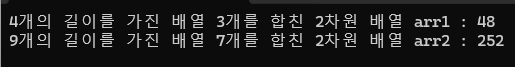이걸로 정확하게 그렇다!는 아니지만 유추해볼 만 한 내용인게 arr1의 경우는 4의 길이를 가진 3개의 배열을 합쳤기에