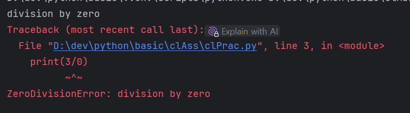 보면 에러 처리로 division by zero가 나왔음에도 불구하고 raise를 만나면서 다시 에러를 출력한다
