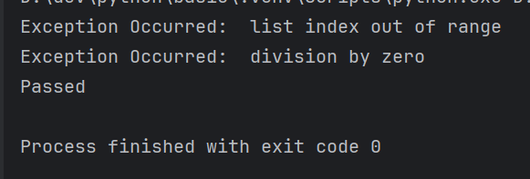 Exception이 발생한 시점 이후로 코드가 실행되지 않고 종료되는 것을 볼 수 있다.