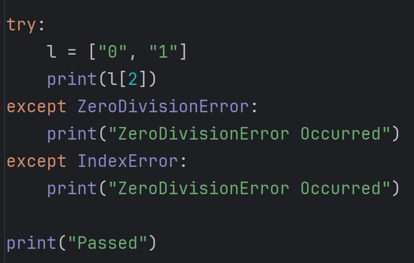 이때 그냥 except구문을 아래로 추가해서 작성하면 된다.