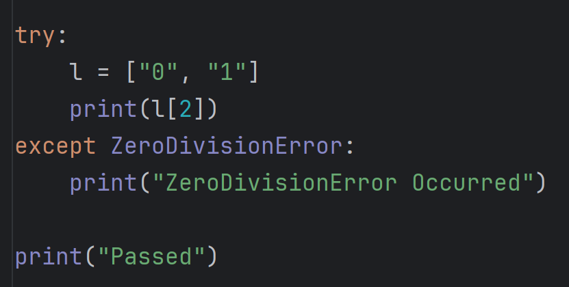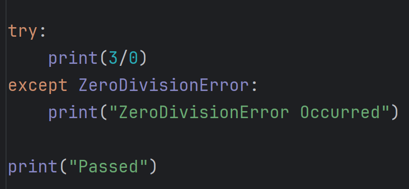 ZeroDivisionError가 발생한다면 except 내부의 코드를 실행시킨다.