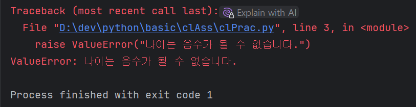 raise ValueError("나이는 음수가 될 수 없습니다.")