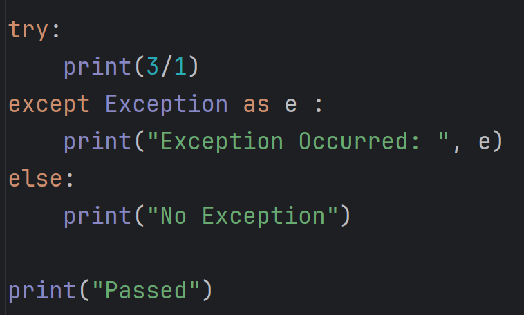 try ~ except 구분 이후에 else라는 구문을 추가해줄 수 있는데 이는 try 내부에서 exception이 발생하지 않은 경우에 실행된다.