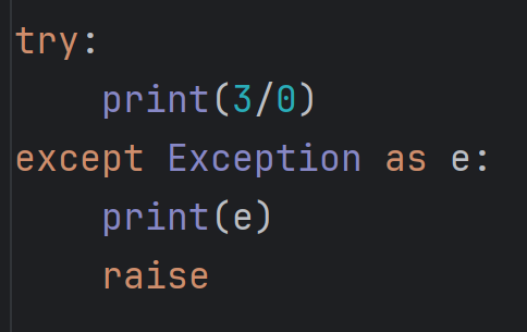 보면 에러 처리로 division by zero가 나왔음에도 불구하고 raise를 만나면서 다시 에러를 출력한다