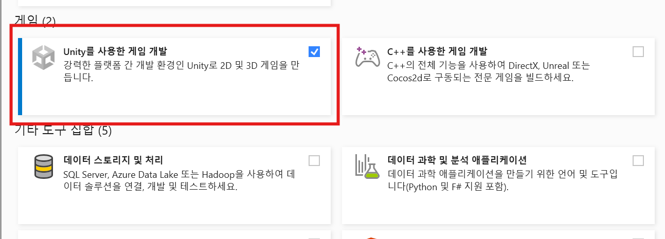 Unity 게임 개발을 하겠다고 한다면 게임 개발(Unity)를 선택하고