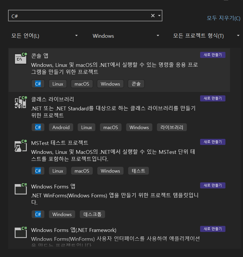 C# 관련된 프로젝트를 만들 수 있게 된다.