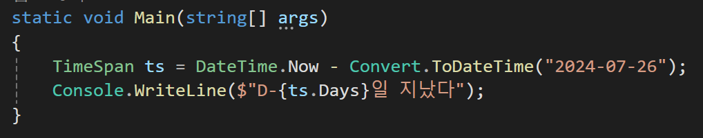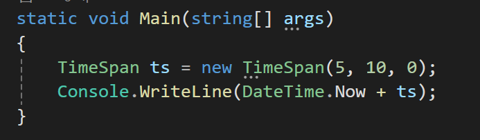 여기서 new TimeSpan을 할때에는 시, 분, 초 요소를 모두 넣어줘야만 생성이 가능하다.