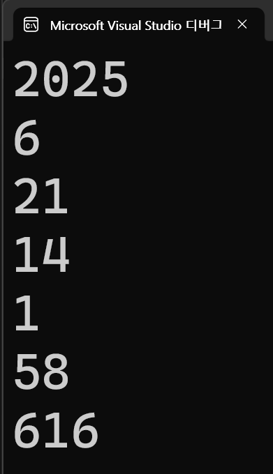 위에서 만들었던 구조체를 사용해서 연도, 월, 일 , 시간, 분, 초, 밀리초 등의 데이터를 따로 따로 불러오도록 할 수 있다.