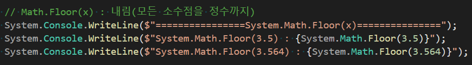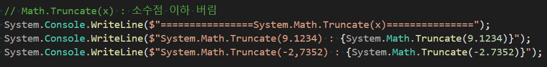 | System.Math.PI | 원주율 π ≈ 3.14159265 |