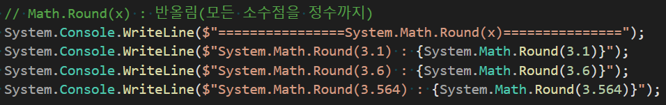 | System.Math.E | 자연상수 e ≈ 2.71828182 |