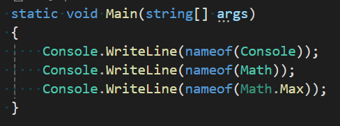 nameof는 6.0 부터 도입된 컴파일 타임 연산자로 변수, 메서드, 클래스, 속성등의 이름을 반환한다.