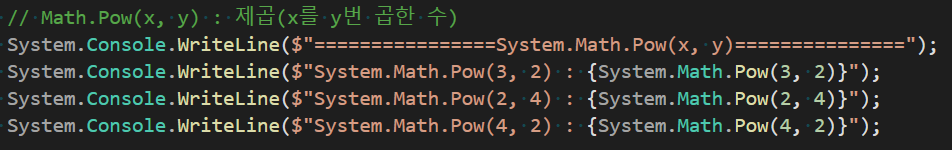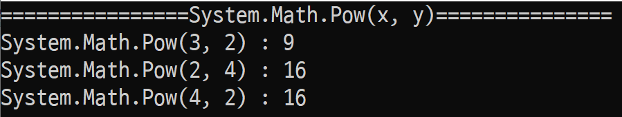 5) Pow(x, y) : 제곱, x를 y번 제곱한다