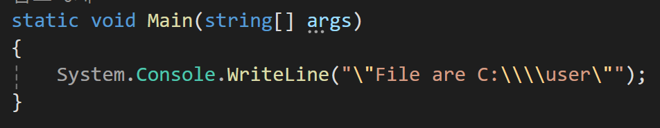 다른 언어들도 비슷하겠지만 C#에도 특수문자를 출력하기 위한 이스케이프 문자를 사용하기 위한 리터럴이 존재한다