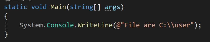 2. Verbatim 문자열 @ - \와 공백들을 그대로 저장해줌