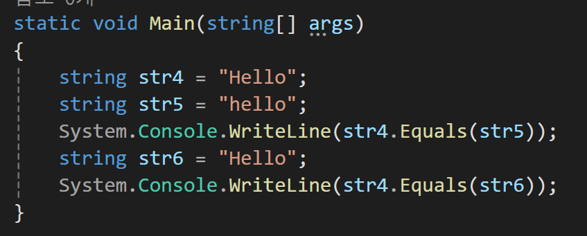6. 문자열 비교 - 문자열을 비교하는 메서드 .Equals() - originStr.Equals(Str);