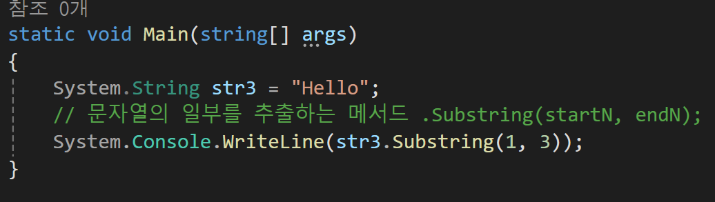 5. 문자열 일부 출력 - str.Substring(시작index, 종료index)