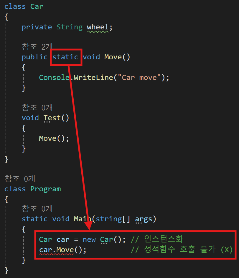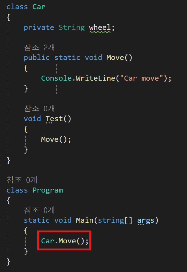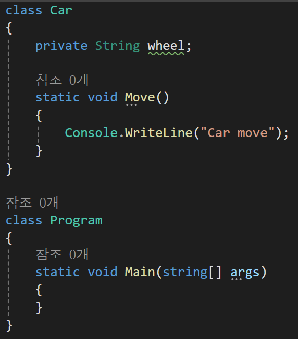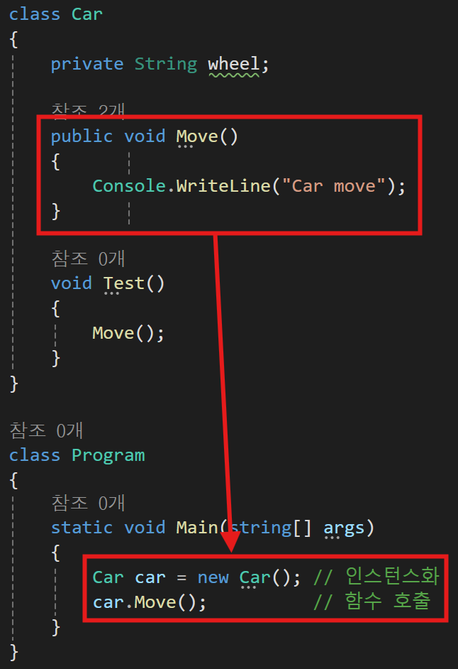 이렇게 자동차 클래스를 하나 생성하고 내부에 Move라는 함수를 만들어줬다.