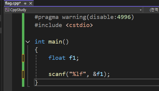 이렇게 4바이트의 크기를 가진 float형 변수 f1을 double형인 lf로 scanf로 전달하게 되면
