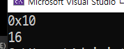 이렇게 %o를 넣은 경우 10을 8진법으로 인식해서 8을 저장하고, %x의 경우는 10을 16진법으로 인식해서 16을 저장하는 것을 알 수 있다.