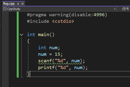 그런데 scanf의 경우는 아래와 같이 사용이 불가능하다.
