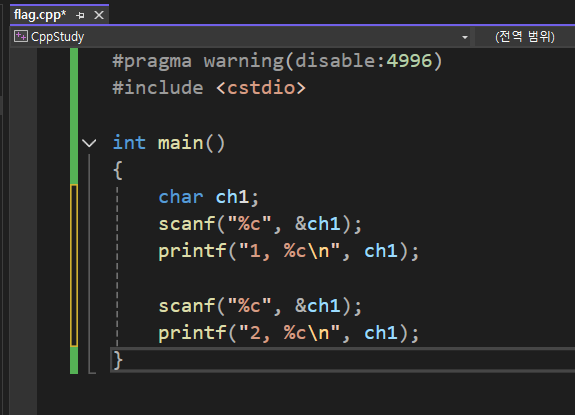 이를 방지하고 싶다면 scanf에서 %c로 하나의 문자를 받은 후에 다음 scanf를 만나기 전에 이 버퍼를 비워준다면 다음 문자도 우리가 원할때 입력해서 직접 넣어 줄 수 있게 될 것이다.