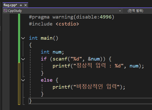 이런 특성을 사용한다면 if 문에서 scanf문을 조건절로 줘서