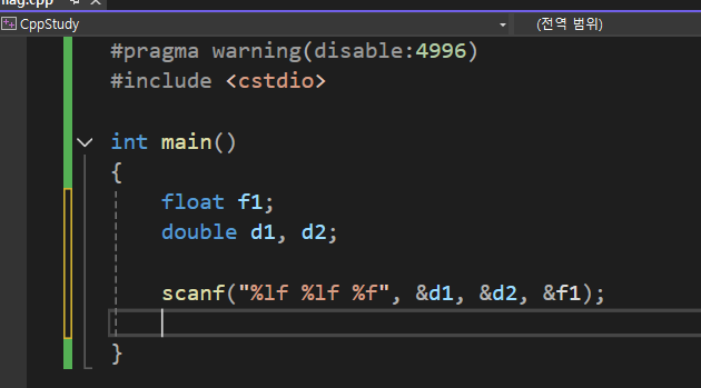 그래서 꼭 float와 double과 같이 부동 소수점의 형태의 데이터를 전달할때에는 %f와 %lf와 같이 형태를 구분해서 scanf에 형식 지정자를 사용해줘야 한다.