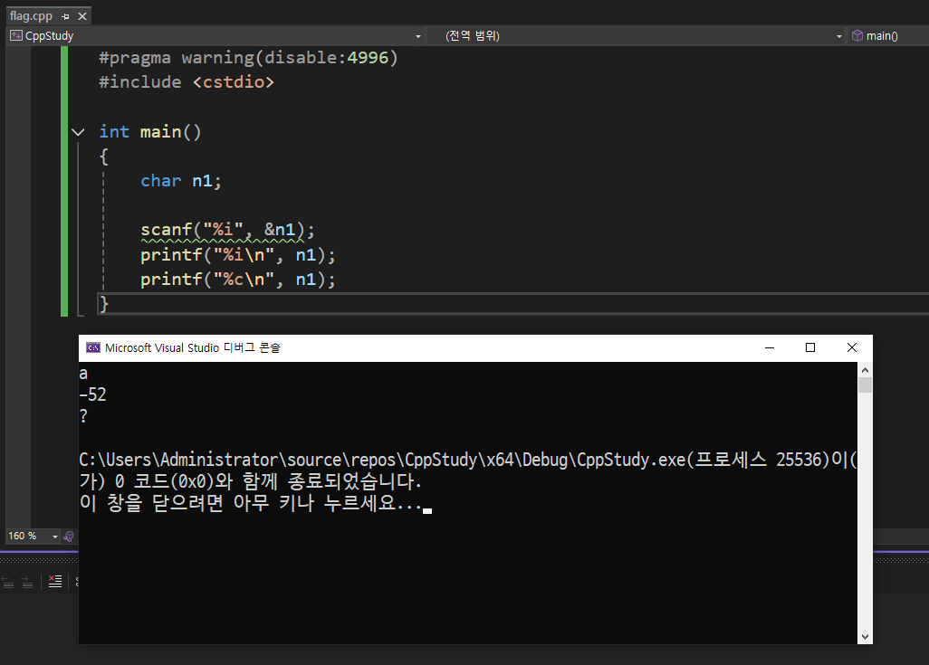 다만 char형 변수를 scanf로 데이터를 받을때에는 %i로는 받을수 없다는 것을 알아둬야 한다