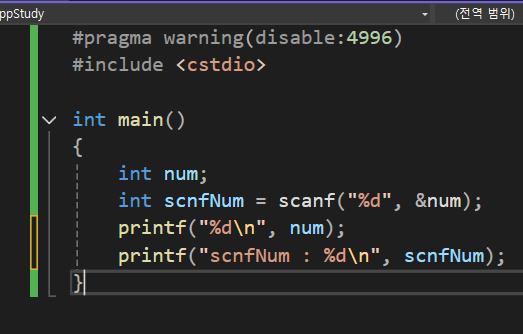그런데 scanf의 경우는 아래와 같이 사용이 불가능하다.