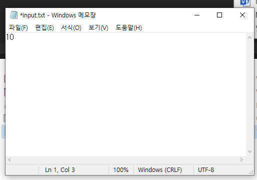 열린 폴더 기준으로 input.txt를 생성해준 다음에