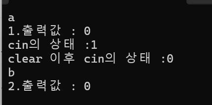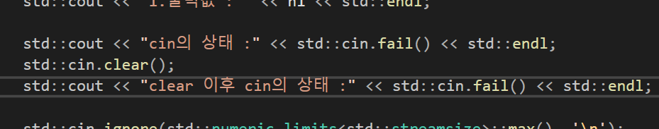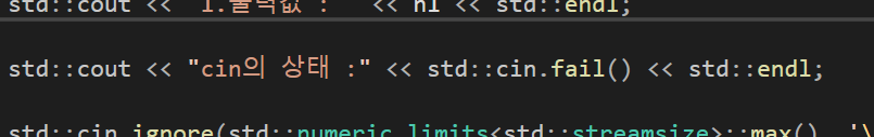 이때 cin의 fail이라는 함수를 확인하면 현재 cin의 상태를 확인할 수 있는데