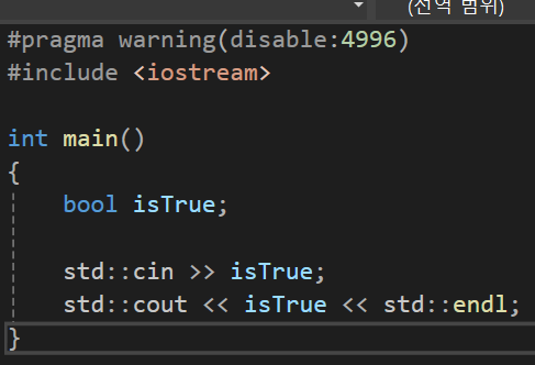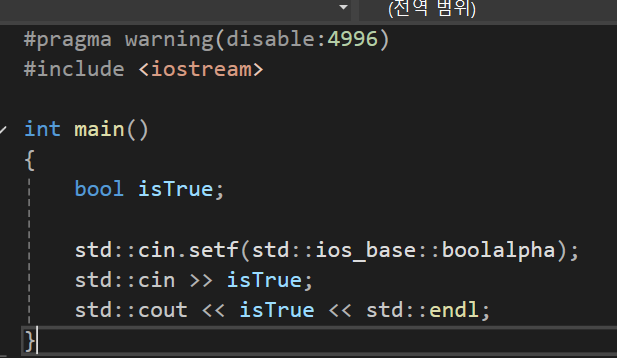 이렇게 하려면 cin을 실제로 사용하기 이전에 cin에 setf를 사용해서 boolalpha를 flag로 설정해주면