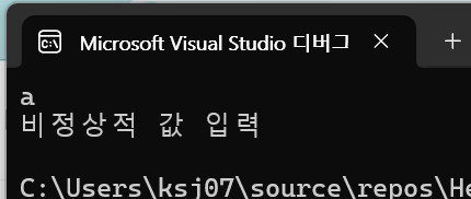 실행한 다음에 숫자가 아니라 문자를 넣어보면