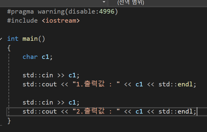 여기서 cin도 scanf처럼 버퍼에 남는 현상은 동일하게 존재한다.