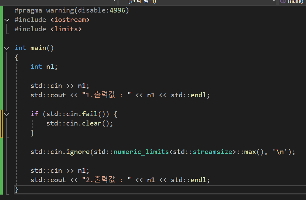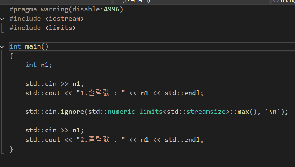 #include <limits>와 std::numeric_limits<std::streamsize>::max()