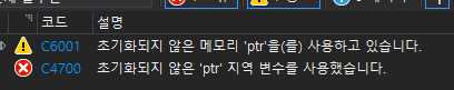 이렇게 초기화 되지 않은 포인터를 사용하고 있다고 에러를 띄운다.