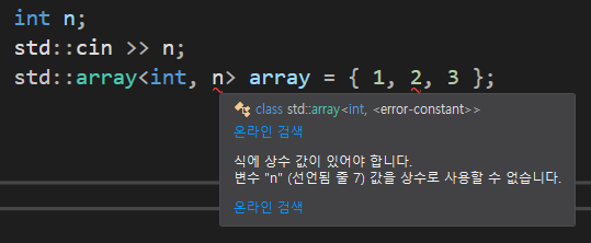 이렇게 사이즈가 컴파일 시점에 지정되어 있어야 하기에