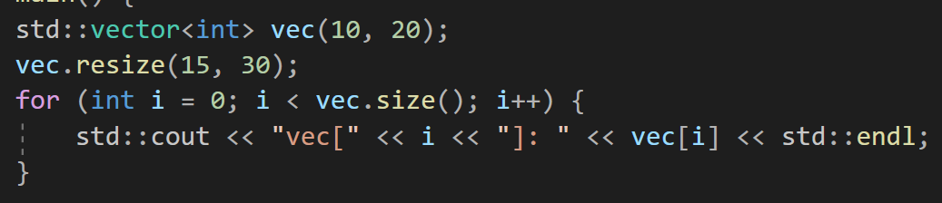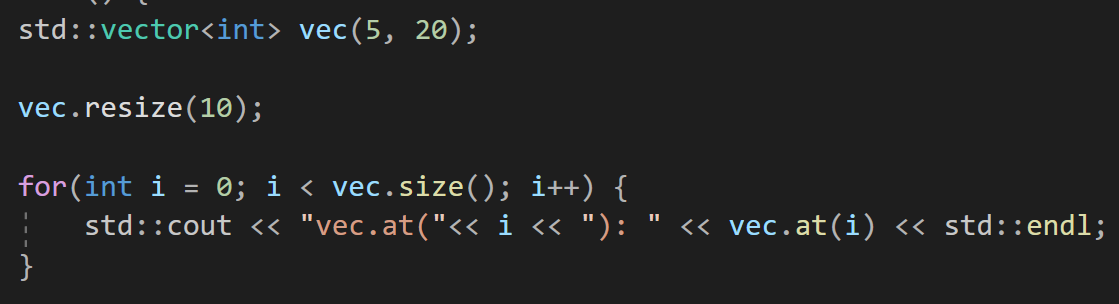 vector에 resize(크기)라는 함수를 사용하면 실행되면서 vector의 사이즈를 바꾸는 것도 가능하다.