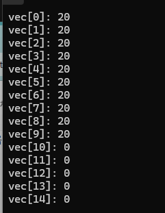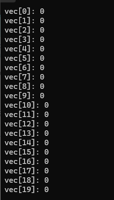 그리고 이렇게 선언한 vector는 기본적으로 모든 항목이 0으로 초기화가 되어 있다.