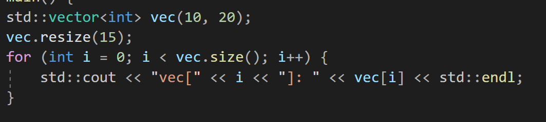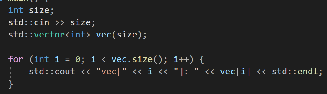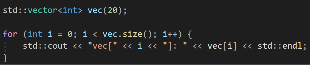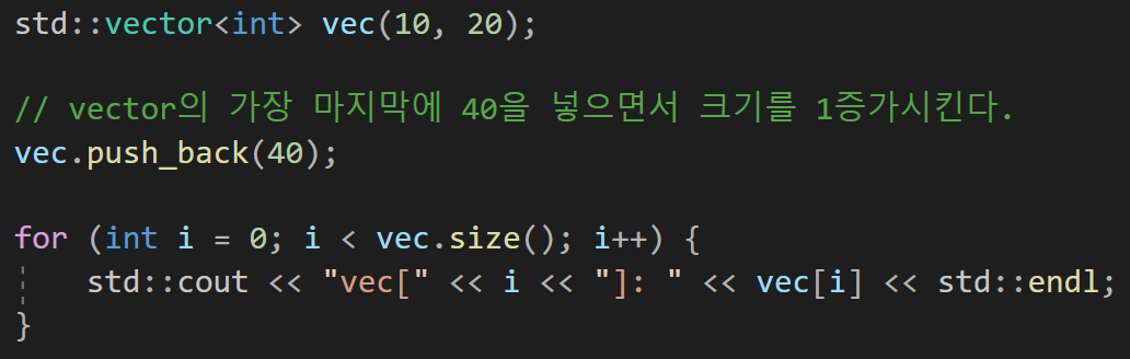 이를 확인해보자면 for문을 통해서 vector의 크기만큼 순회하면서 출력해주면