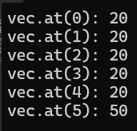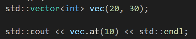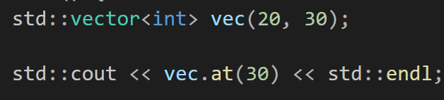 array 처럼 요소에 접근을 할 수 있는 방법으로 []로 접근하면 out of range에 대한 exception을 발생시키지 않으나 at(i)로 접근하는 경우는 out of range exception을 발생시켜 런타임 시점에 오류를 감지할 수 있다.