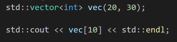 3) vector[ i ] : 범위 검사 없는 요소 접근(at(i)보다 빠름)