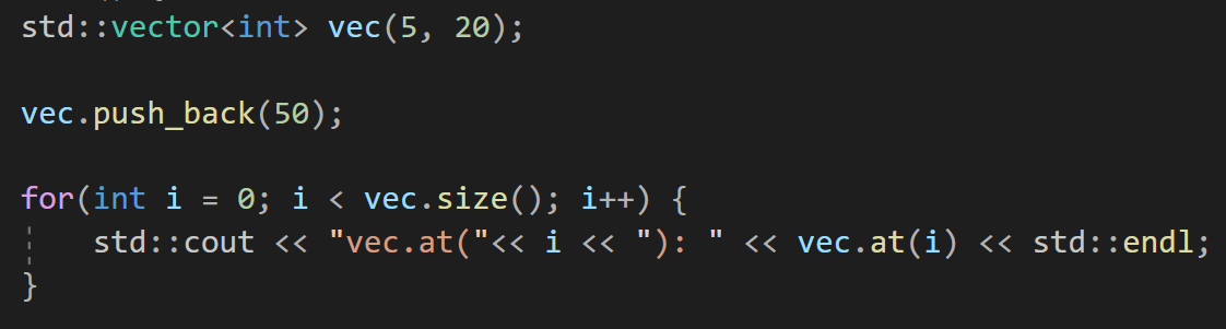 2) vector.at(i) : 범위검사를 포함한 요소 접근([i]보다 느림)