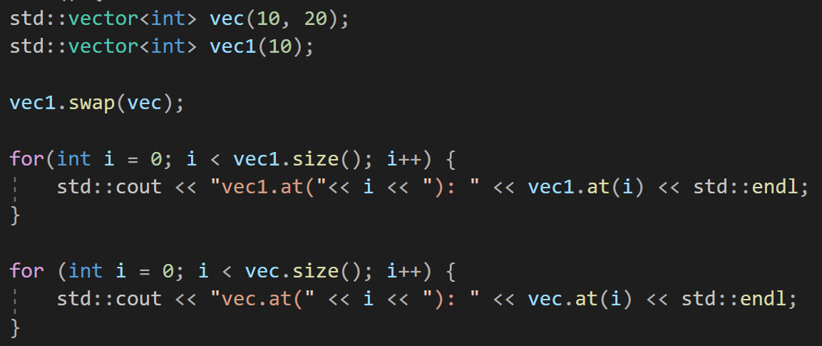 7) vector.swap(vector2) : vector2의 내용과 vector 내용을 교환한다.