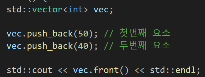 6) vector.data() : 내부 배열 주소(vector 내부 로직에서 사용되는 배열 주소)를 반환