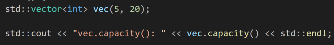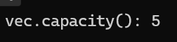 // size가 5인 vector, 재할당되었기에 이전 capacity가 4이였다는 것을 확인할 수 있음
