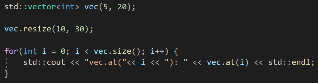 여기서 resize에서도 두번째 인자로 값을 추가하면 그 값으로 추가된 값들에 대해서 초기화를 해준다.